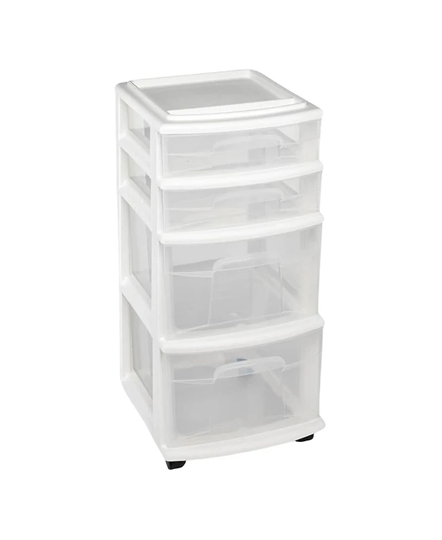 Homz Plastic 3 Drawer Medium Storage Container Tower, Blue Drawers/White Frame