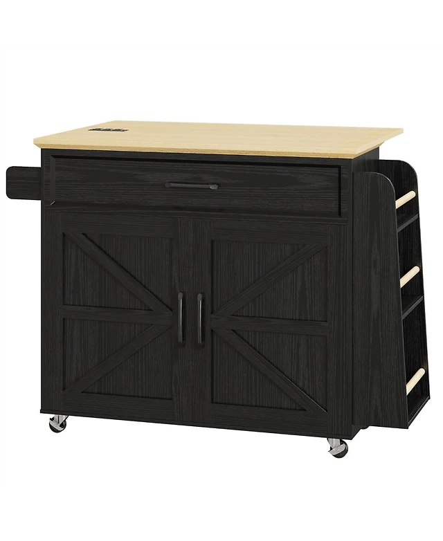 36” H Kitchen Island Cart on Wheels with Solid Wood Top & Storage White