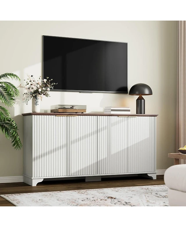 Sugift Modern Farmhouse Tv Stand, 2-Door Tv Cabinet for Tv up to 65"