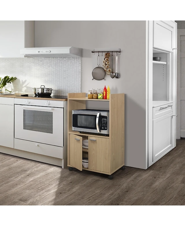 Halifax North America Brown Oak Kitchen Trolley: Rolling Cart with Rubberwood Top & Racks