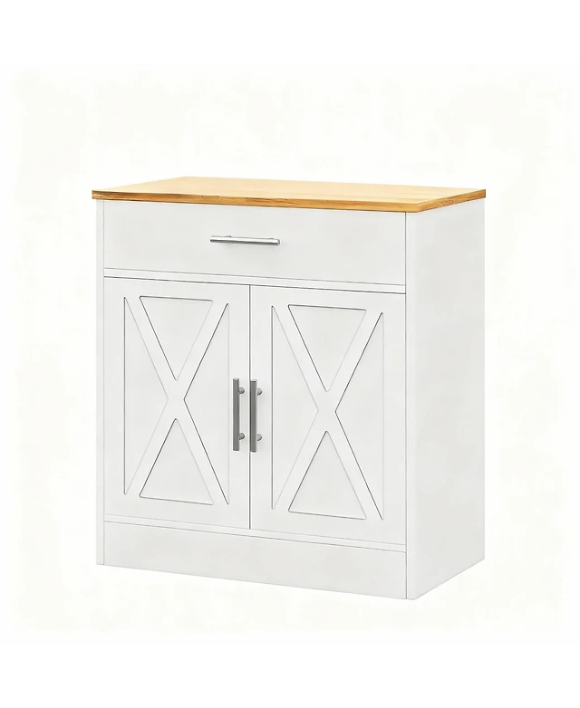 gaomon 72" Pure White Farmhouse Bar Cabinet with Sliding Barn Door, Kitchen Buffet with Hutch, 3 Drawers, Wine & Glasses Rack