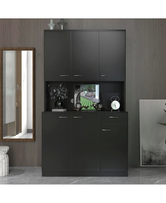 Streamdale Furniture 72" Fluted Pantry Cabinet - Keyboard Drawers & Adjustable Shelves Black