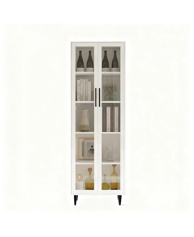 Streamdale Furniture Tempered Glass Display Cabinet w/ Light & Adjustable Feet - White