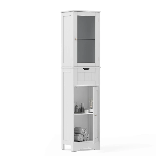 Single-drawer 4-door shoe cabinet, white multi-functional shoe rack, movable shelves