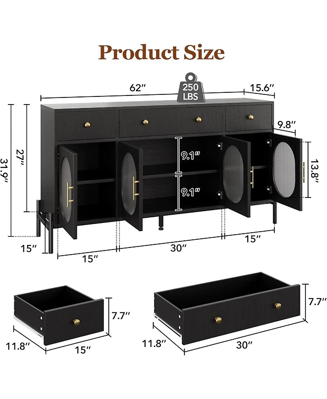 gaomon 55" Kitchen Buffet Cabinet, Modern Sideboard with 2 Drawers & 4 Doors for Dining Room