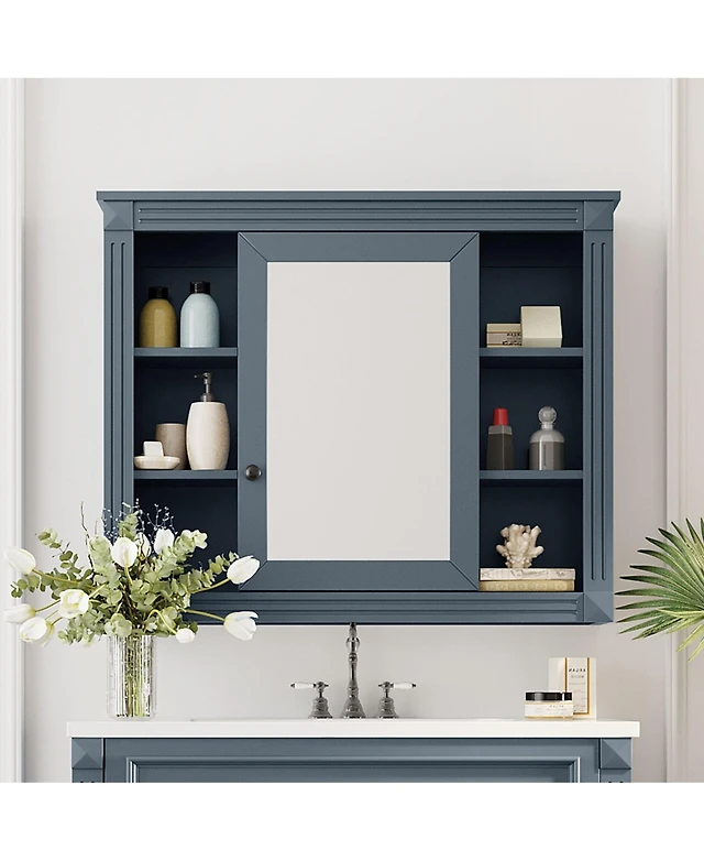 Streamdale Furniture Bathroom Wall Cabinet, 3-Door Wooden Cabinet with Open/Hidden Storage