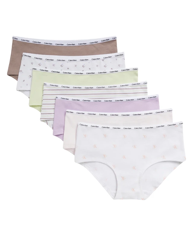 Calvin Klein Girls' 6-16 Logo Waistband Hipster Briefs, 7-Pack