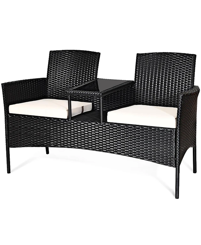 3-Piece Patio Rattan Roker Chairs with Tempered Glass Table and Soft Cushions