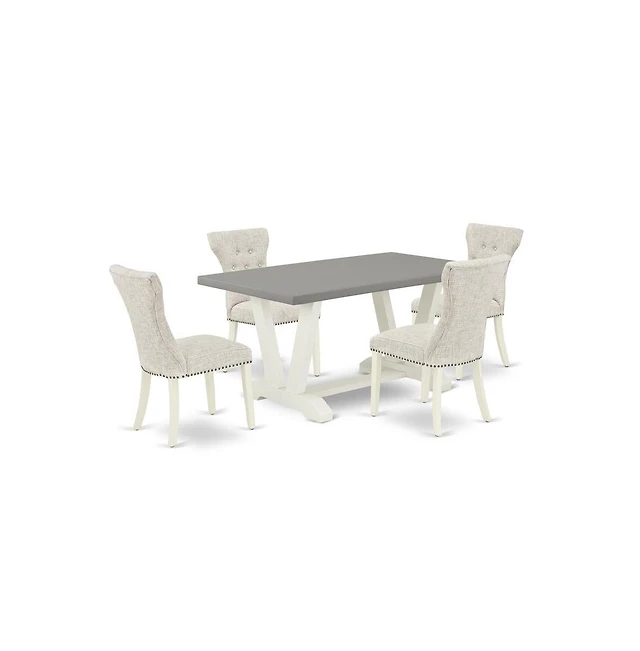 East West Furniture V076CE215-5 5-Piece Dining Set- 4 Dining Room Chairs with Baby Blue Linen Fabric Seat and Button Tufted Chair Back