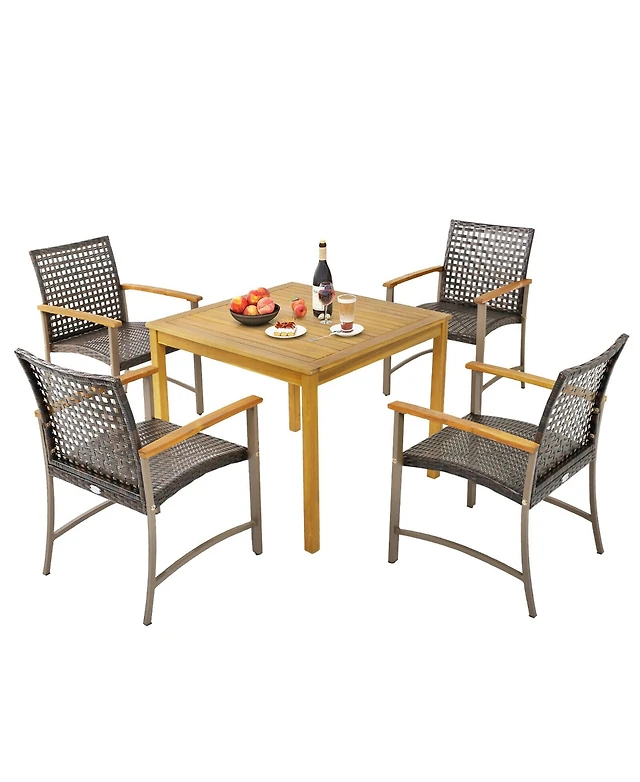 7 Pcs Acacia Wood Patio Dining Set 6 Armchairs and 69" Table with 2" Umbrella Hole
