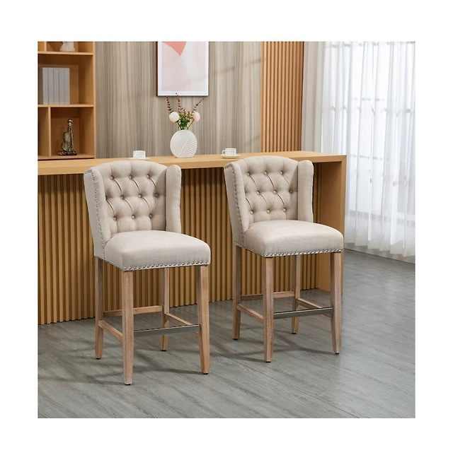 Swivel Bar Stool with Upholstered Back Seat and Footrest