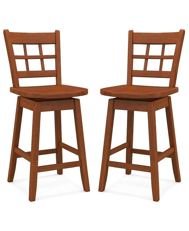 Gouun Counter Height Barstools Set of 2 with 6-Grid Hollow Back and Seat
