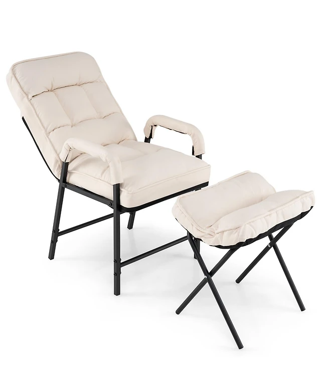 Costway Lazy Sofa Chair Accent Leisure Armchair with Folding Footrest & Storage Pocket