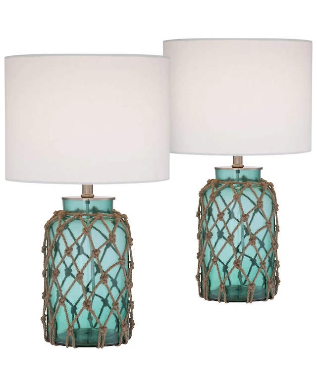 360 Lighting Nautical Accent Table Lamps 22.5" High Set of 2 Coastal Blue Green Rope Net Off White Drum Shade for Living Room Family Bedroom