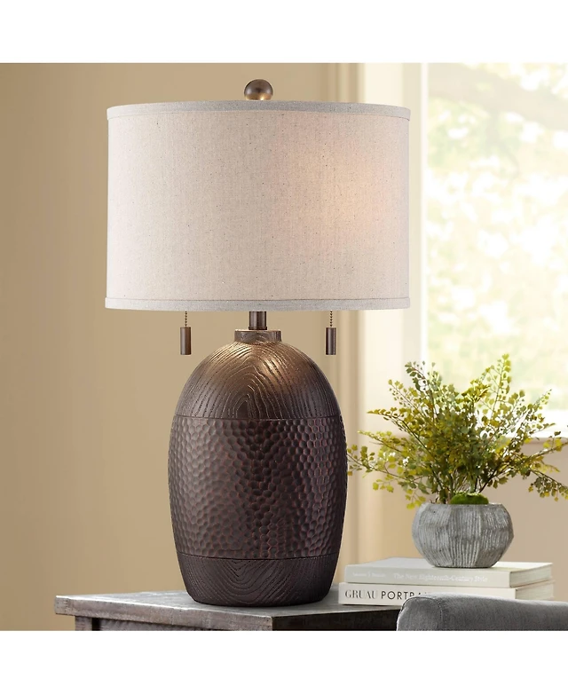 360 Lighting Rupert Rustic Farmhouse Table Lamp 24 3/4" High Beige Hammered Off White Linen Drum Shade for Bedroom Living Room Bedside Nightstand
