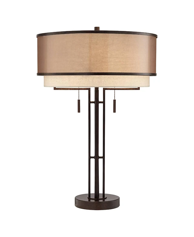 Franklin Iron Works Industrial Table Lamp with Usb and Ac Power Outlet Workstation Charging Base 26" High Bronze Double Shade Living Room