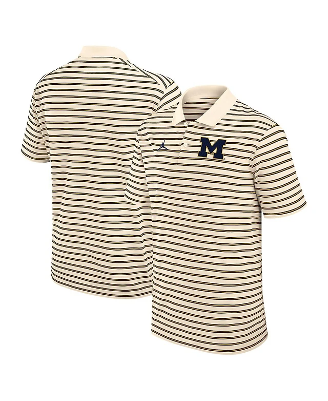 Jordan Men's Tan/Navy Michigan Wolverines Striped Primary Logo Performance Polo Shirt