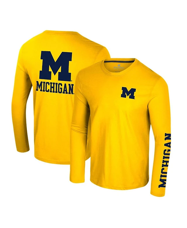 Colosseum Men's Maize Michigan Wolverines Logo Lockup 3-Hit Active Blend Long Sleeve T-Shirt