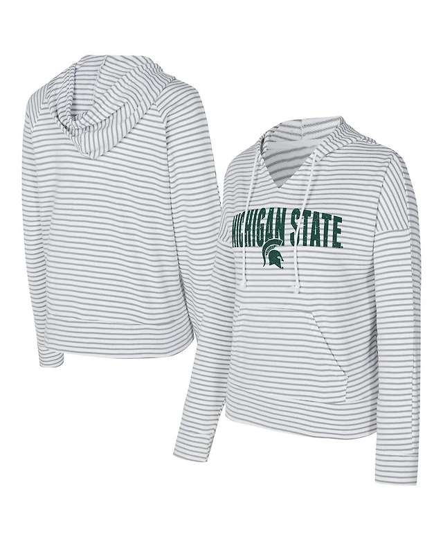 Concepts Sport Men's White/Gray Michigan State Spartans French Terry Striped V-Neck Pullover Hoodie