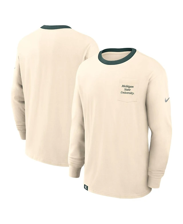 Nike Men's Natural Michigan State Spartans Athletic Prep Max90 Pocket Logo Long Sleeve T-Shirt