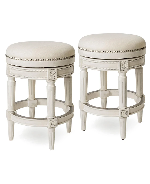 Maven Lane Pullman Backless Counter Stool in White Oak Finish w/ Natural Color Fabric Upholstery, Set of 2