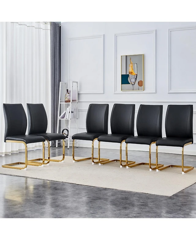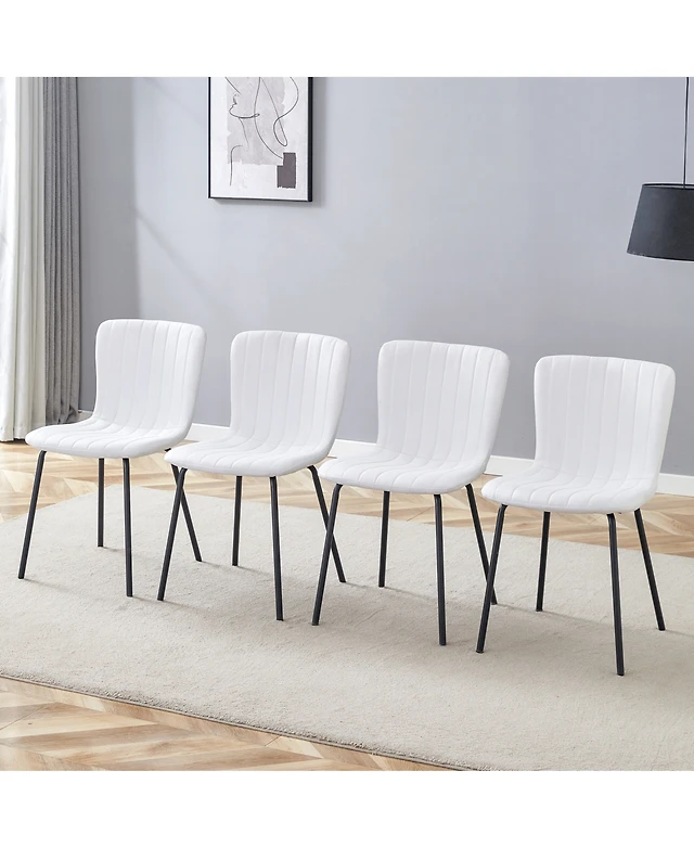 Sugift 4 Pieces Pvc Elegant Design Leather Dining Chairs with Solid Metal Legs