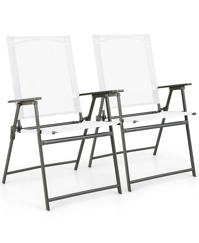 Sugift Set of 2 Patio Folding Chairs Sling Portable Dining Chair Set with Armrest
