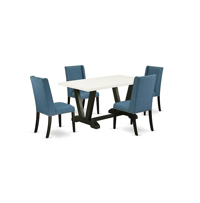 East West Furniture 5-Pc Kitchen Dining Room Set- 4 Parson Dining Room Chairs with Baby Blue Linen Fabric Seat and Button Tufted Chair Back