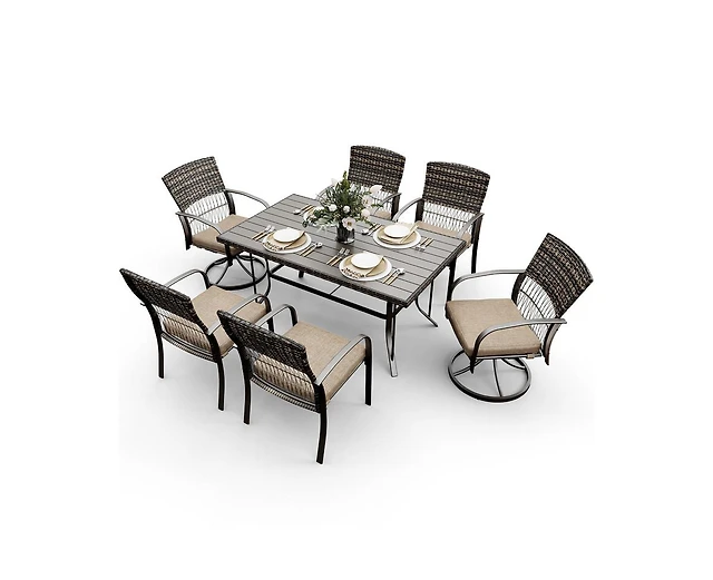 Swivel Textilene Metal Outdoor Patio Dining Chair in Light Taupe (Set of 2)