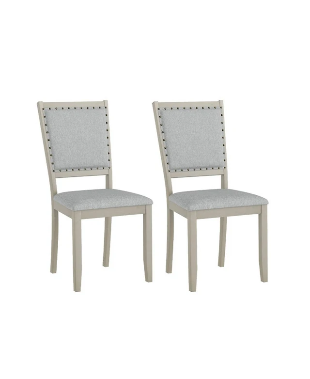 Gouun Set of 2 Farmhouse Fabric Upholstered Dining Chairs with Nailhead Trim