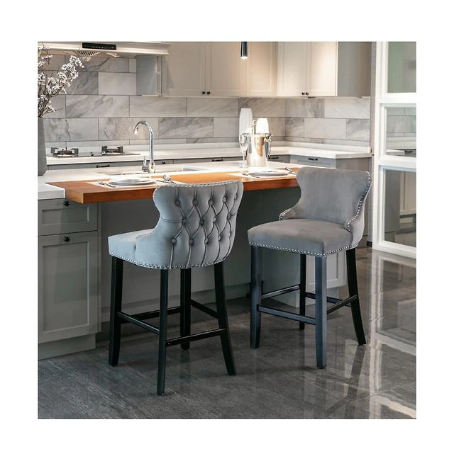 Abbyson Living Avery 38.1" 2 Piece Wood-Back Upholstered Counter Stools