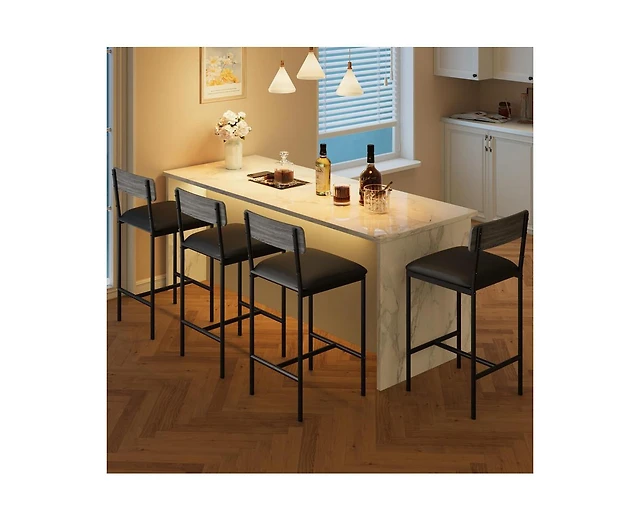 Set of 4 Counter Height Stools, Modern Kitchen Island Chairs with Walnut Metal Legs-Maison Boucle