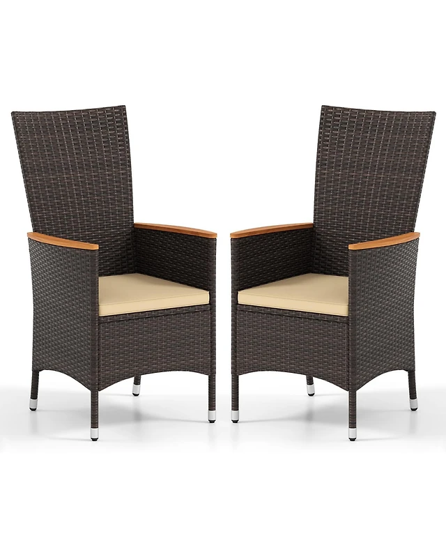 Costway 7 Pcs Patio Dining Set with Acacia Wood Dining Table Rattan Armchairs Soft Cushions