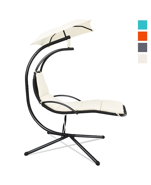 Costway Patio Hanging Hammock Chaise Lounge Chair with Canopy Cushion