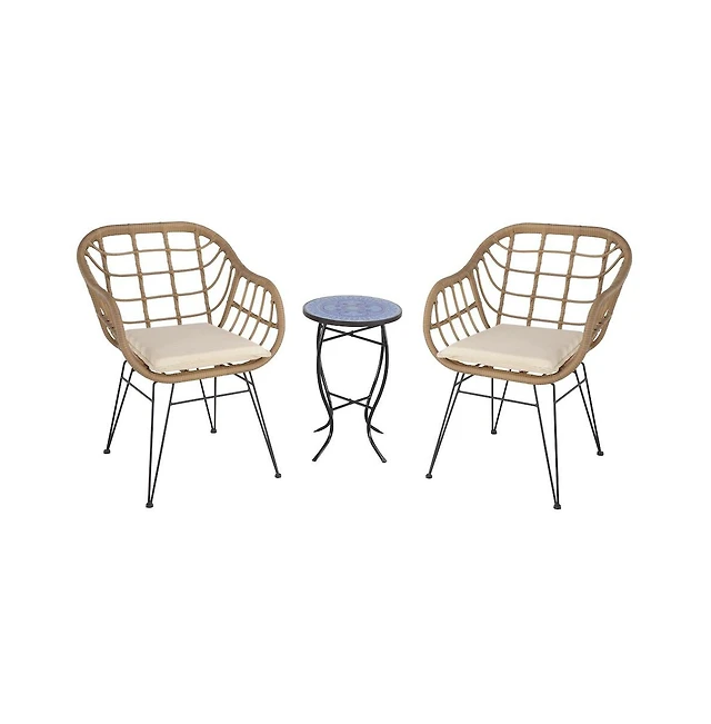 Outsunny 3pc Rocking Chair Set w/ Cushions, Wicker Bistro Set