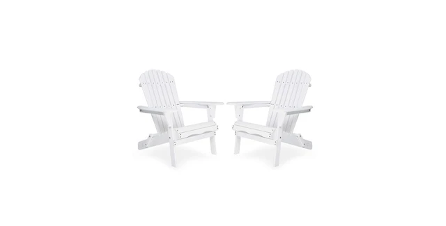 Flynama Solid Cedar Wood Folding Adirondack Chair Set of 2 with Embossed Grain