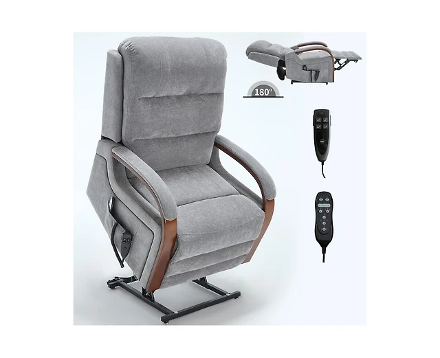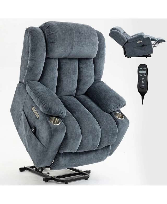 Maison Boucle Power Lift Recliner with Heat & Massage, Electric Chenille Chair Usb Port, Cup Holders Heavy-Duty 350 Lbs Support-Maison