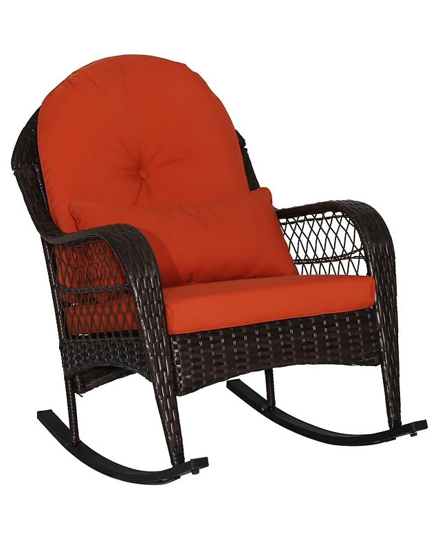 Outdoor Patio Wicker Rocking Chair Set with Cushions and Decorative Accent Pillow
