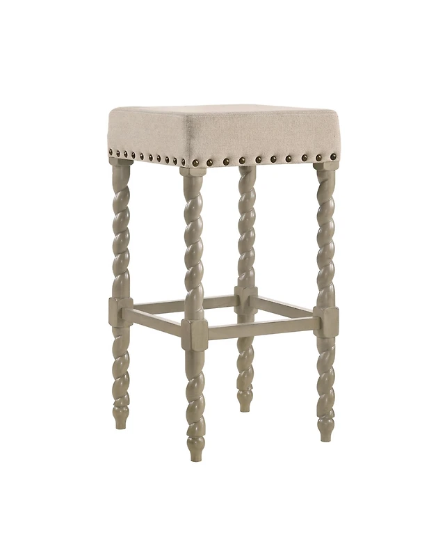 Maven Lane Pullman Backless Bar Stool in Weathered Oak Finish w/ Sand Color Fabric Upholstery, Set of 4