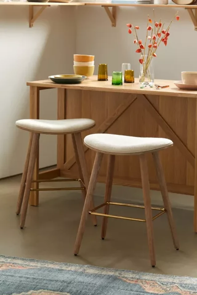 Maven Lane Pullman Backless Counter Stool in White Oak Finish w/ Natural Color Fabric Upholstery, Set of 2