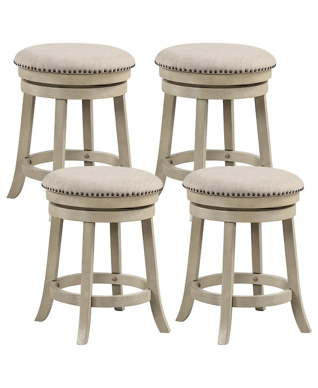 Maven Lane Pullman Backless Bar Stool in Weathered Oak Finish w/ Sand Color Fabric Upholstery, Set of 4