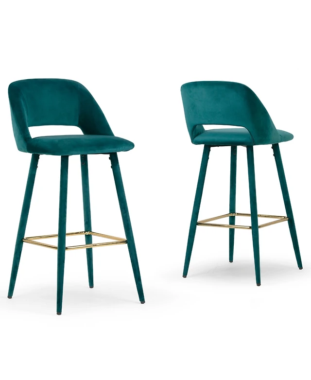 29.5" Outdoor Modern Polypropylene Plastic Patio Bar Height Stools (Set of 2)