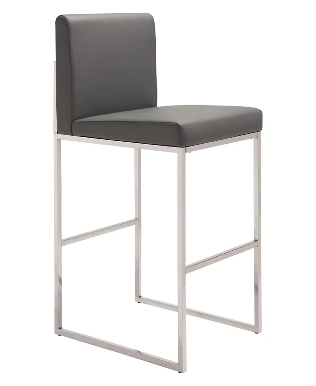 Maven Lane Pullman Backless Counter Stool in Reclaimed Oak Finish with Ash Grey Fabric Upholstery, Set of 3