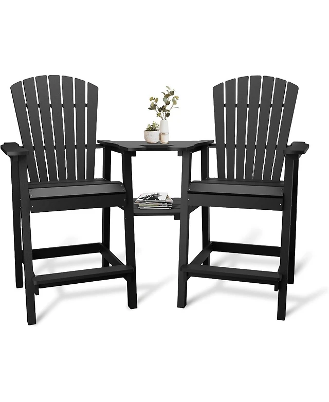 gaomon Outdoor Poly Adirondack Barstools with Connecting Tray, Tall Chairs Bar for Deck, Balcony