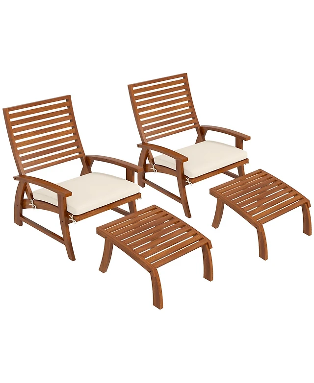 2PCS Patio Folding Rattan Lounge Chair Wood Frame Retractable Footrest