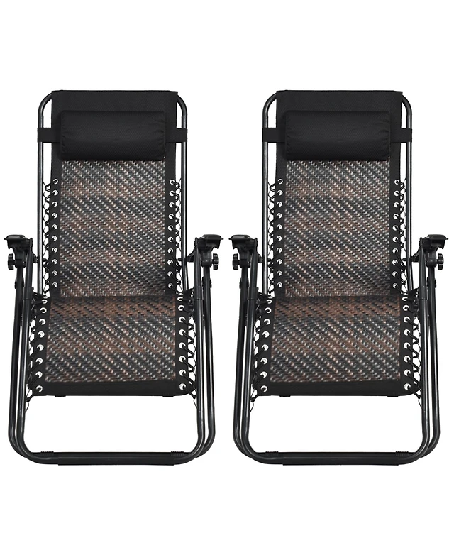 2PCS Folding Patio Rattan Lounge Chair Chaise Cushioned Portable Garden Lawn
