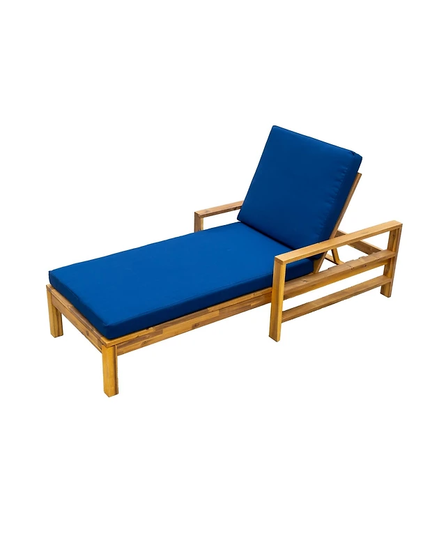 5 Pieces Acacia Wood Patio Chaise Lounge Chair Set with Ottoman and Cushions