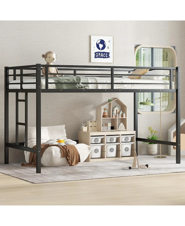 Twin Size Loft Bed Heavy Duty Metal Loft Bed Frame with Safety Guardrail