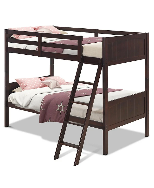 Twin Sturdy Wooden Bunk Beds with Ladder and Safety Rail