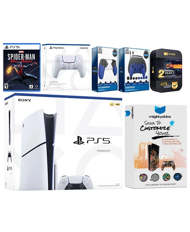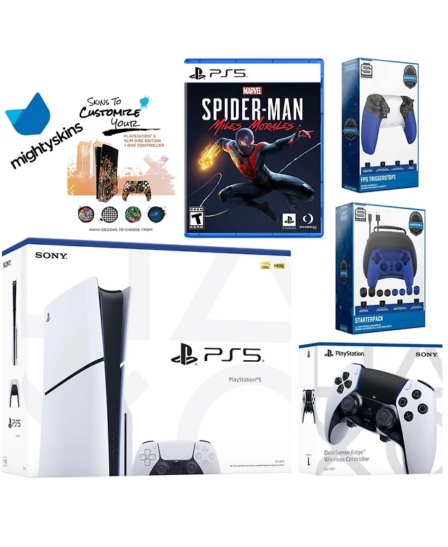 Sony Playstation 5 Slim Disc Bundle with Spider-Man: Miles Morales, Extra Controller, Pro Gamer Kit, Dual Charge Dock and MightySkins Decal Voucher